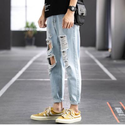 首页 > 男装 > 裤子 > 牛仔裤 > 春夏季新款大破洞牛仔裤男潮流韩版修身休闲男士裤子九分